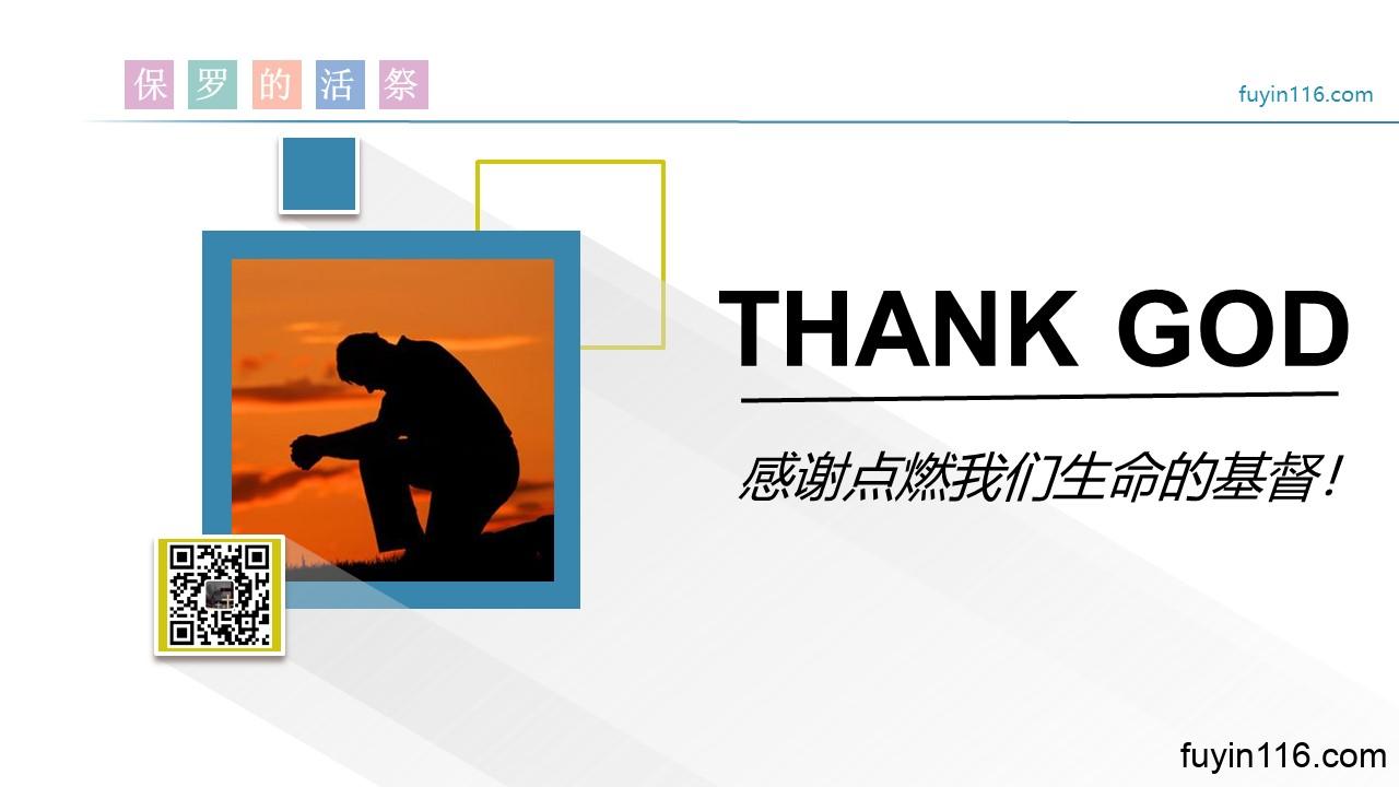 也特别感谢主,赐给我们使徒保罗这样一个伟大的榜样,给我们很多启迪、安慰和激励。