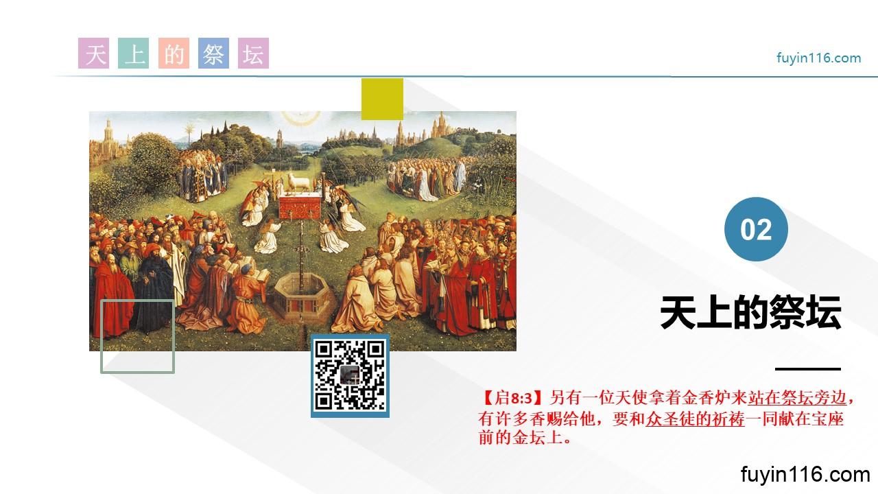 在圣经的最后一卷书《启示录》,我们会惊奇地发现,有关“祭坛”的信息依然是十分丰富的,有5处经文直接讲到祭坛。