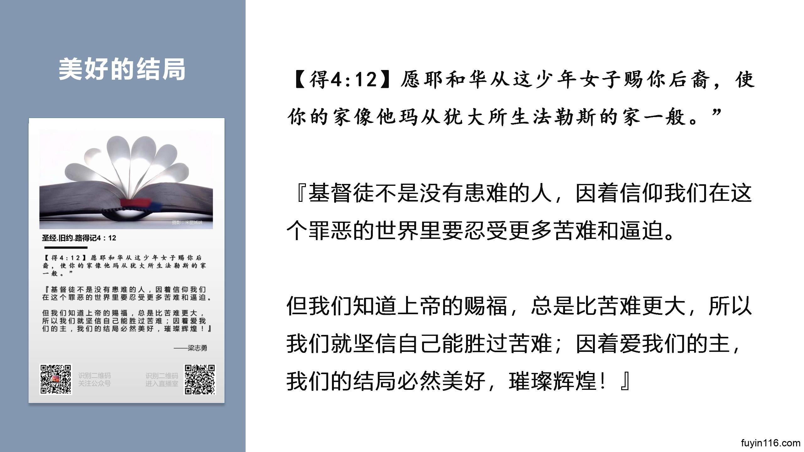 求你赐福我们所讲的,借着《路得记》的系列讲道,让每一个听众都从中得造就,知道如何跟从主基督,如何坚守信仰,如何在恩典中生命不断成长。