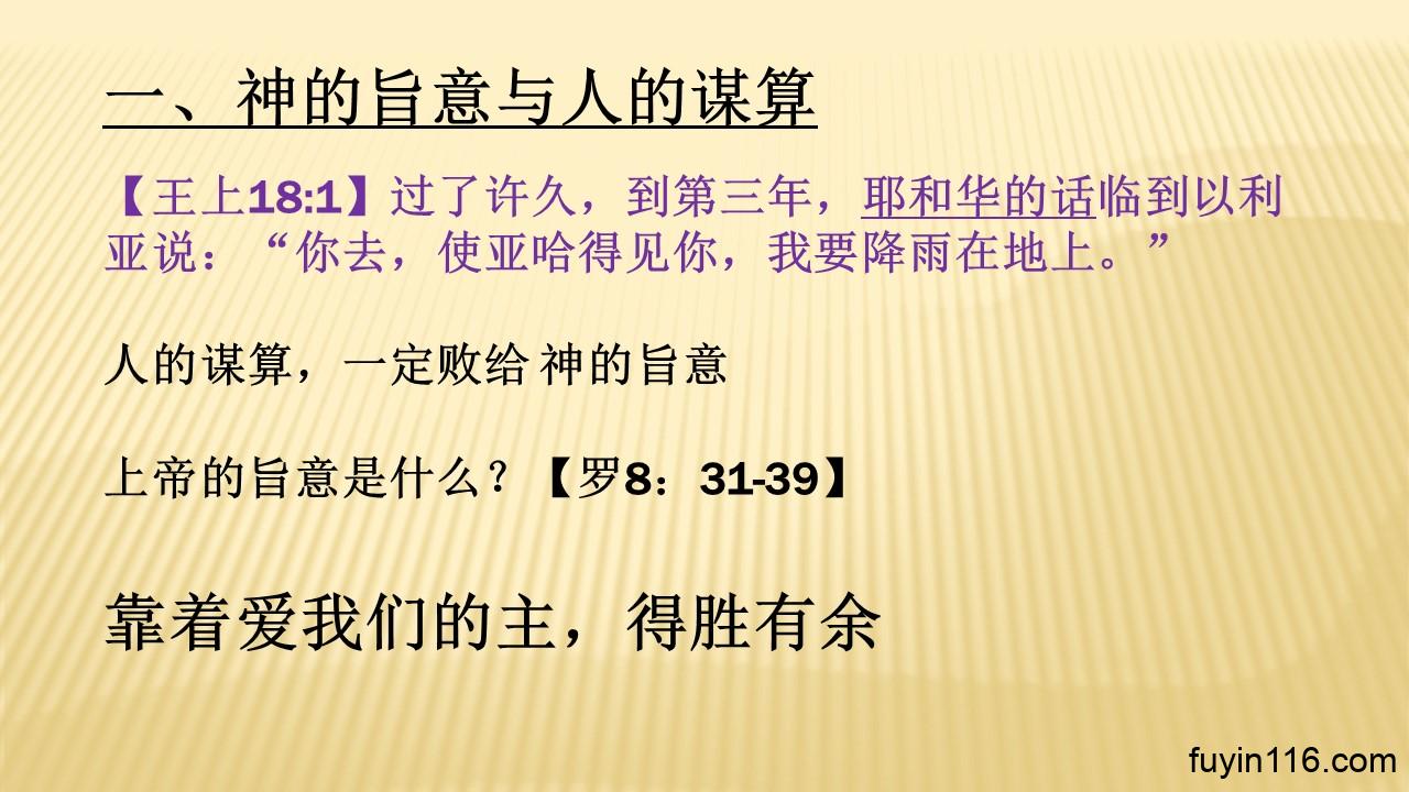 求你赐福我们所讲的《以利亚》系列信息,借着这一系列的信息分享,让你的百姓更认识主的美意,更顺服主的带领。