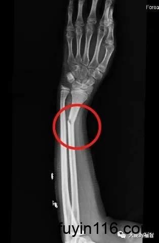 医生说,你手臂痛,头痛,而且摸着就痛,但是医生又不能把他的肉挖开了,看里面怎么样,所以医生说你去照下X光,一照X光,发现原来他里面的骨头断了。