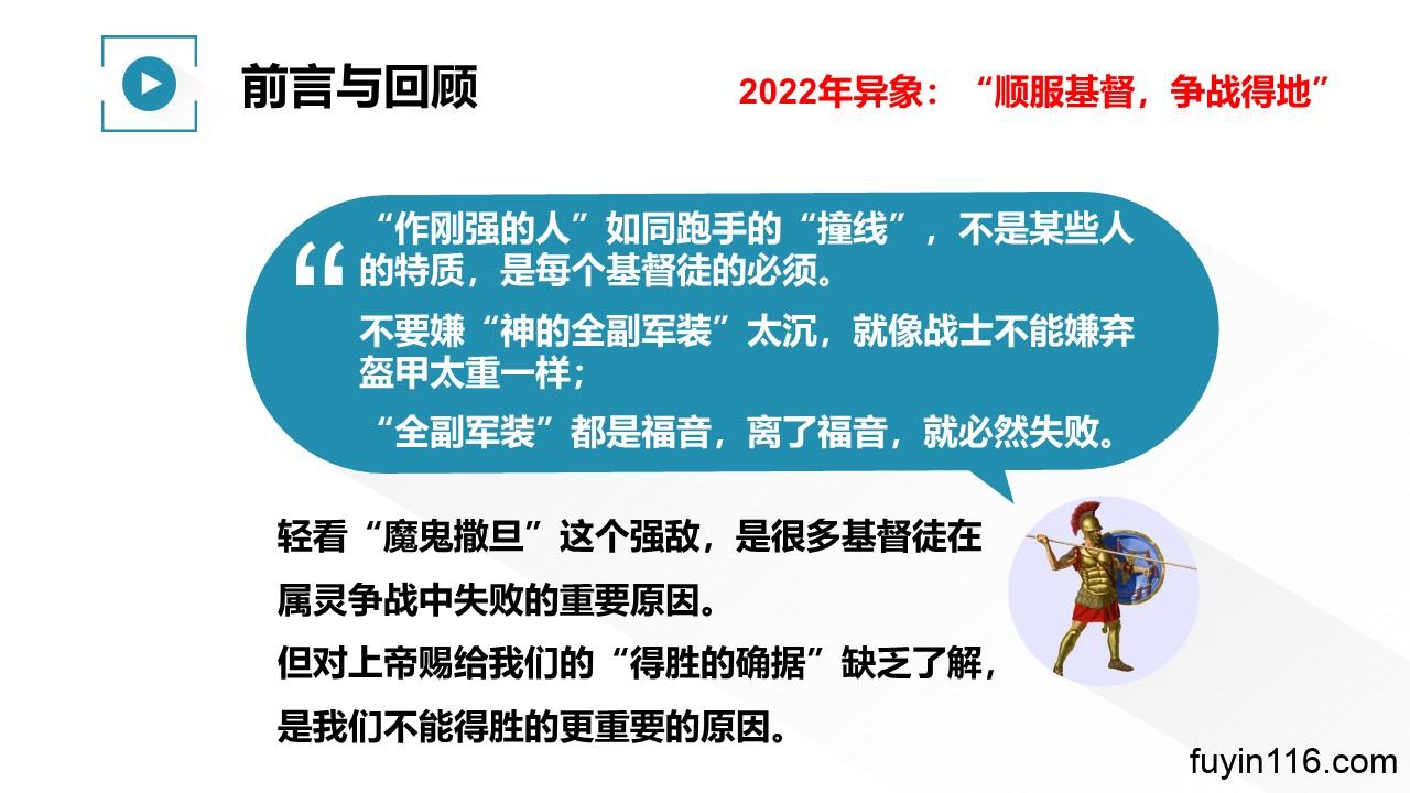 上一讲的信息《作刚强的人》中,我们知道,上帝的心意,是让我们都“靠主作刚强的人”,穿戴神的全副军装,刚强站立,见证福音。我们不可以轻看魔鬼这个可怕的仇敌,以至于落败。