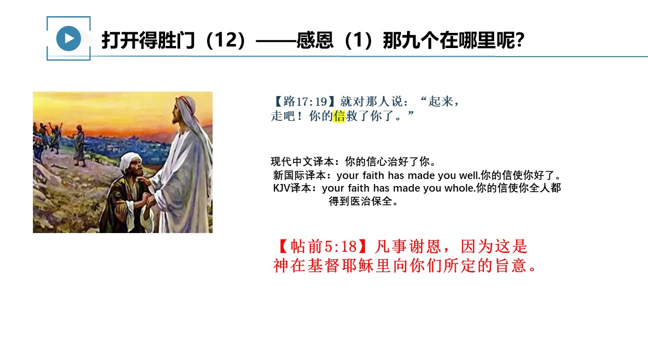 主耶稣曾经医好了十个大麻风病人,其中只有一人回来感恩。