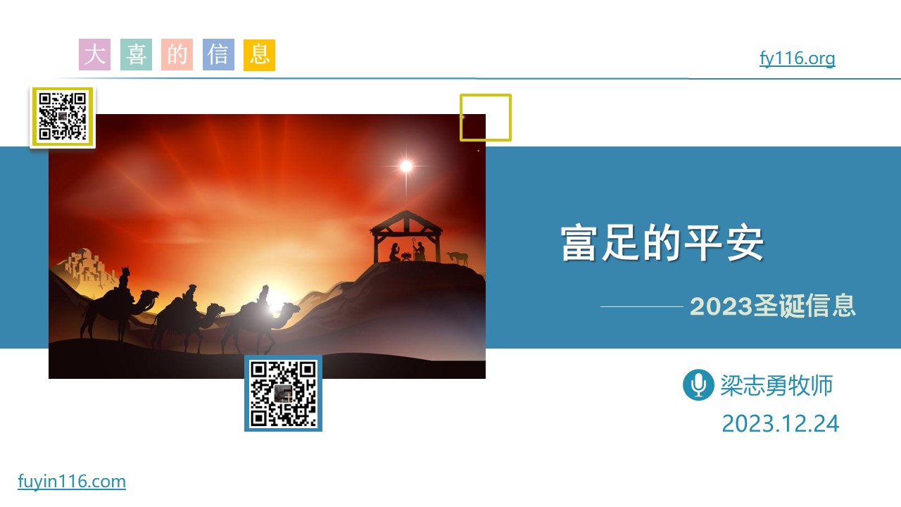 亲爱的朋友,你看到我们2023年圣诞福音布道会的信息《富足的平安》,绝不是偶然,而是上帝精心安排的结果。