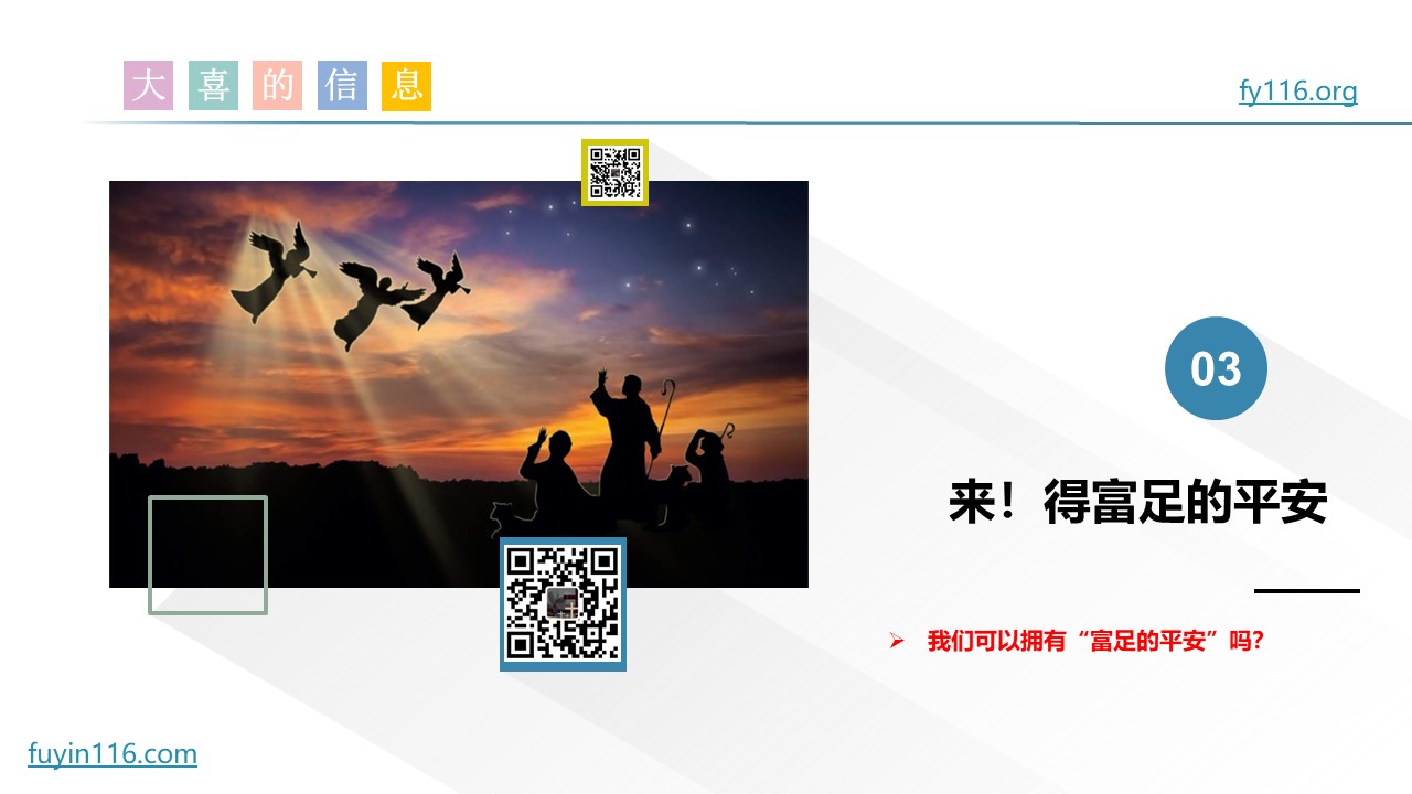 正如我们信息里说的,我们要得到“富足的平安”,就要“信耶稣”,成为“上帝喜悦的人”