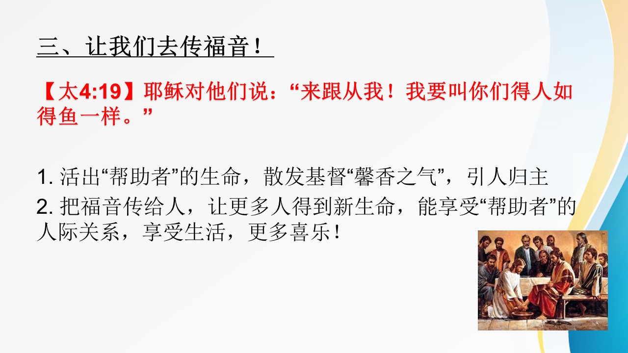 让我们更认识福音的大能,更注重与主同行、与神相交的生命建造,更勇敢为主作见证。