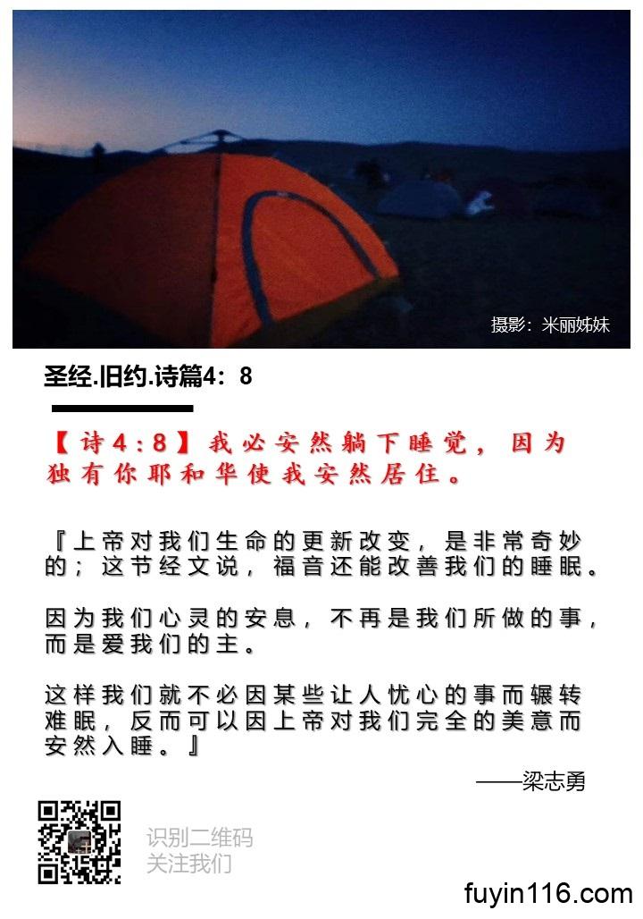 【诗4:8】我必安然躺下睡觉,因为独有你耶和华使我安然居住。