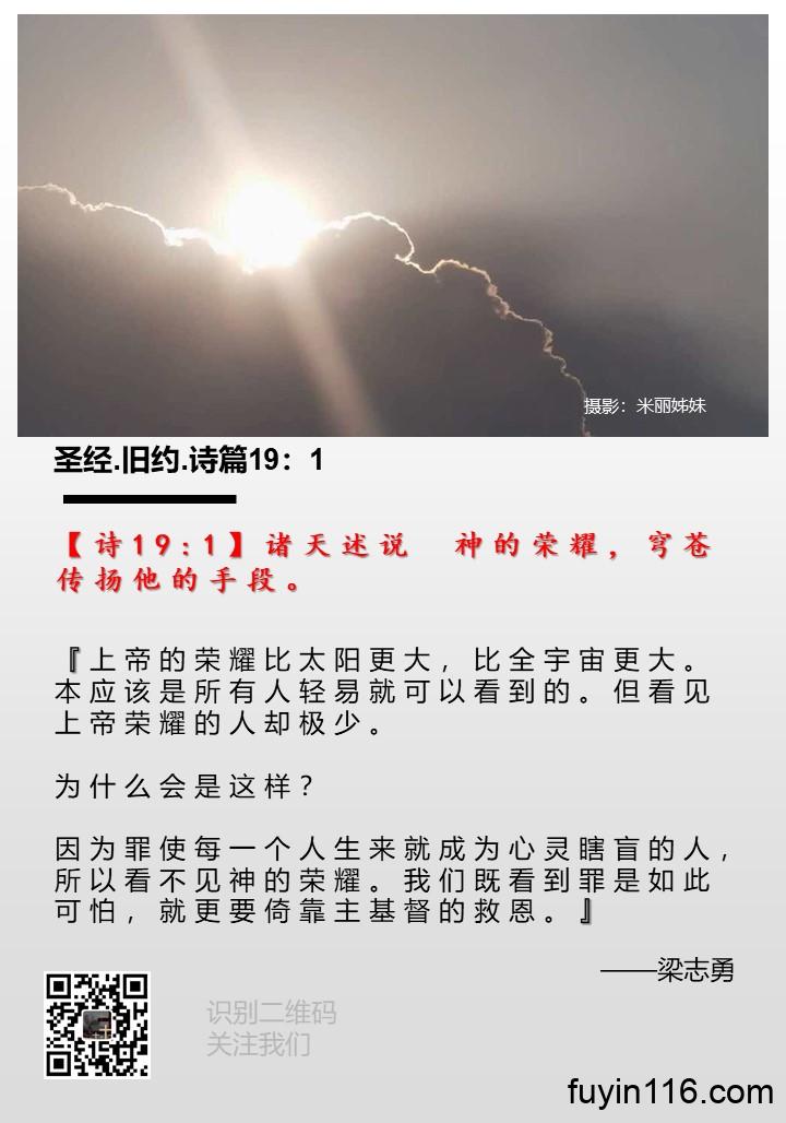 【诗19:1】诸天述说 神的荣耀,穹苍传扬他的手段。