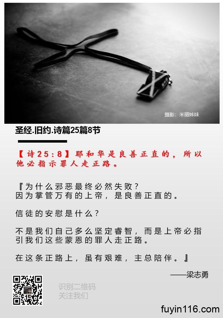 【诗25:8】耶和华是良善正直的,所以他必指示罪人走正路。