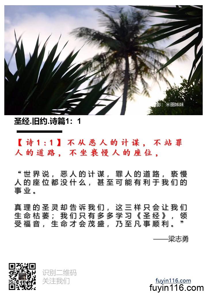 【诗1:1】不从恶人的计谋,不站罪人的道路,不坐亵慢人的座位,