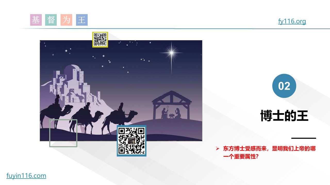 当主基督降生的时候,东方的博士跋涉千里,来拜见婴孩耶稣,