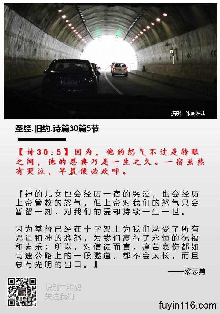 【诗30:5】因为,他的怒气不过是转眼之间,他的恩典乃是一生之久。一宿虽然有哭泣,早晨便必欢呼。