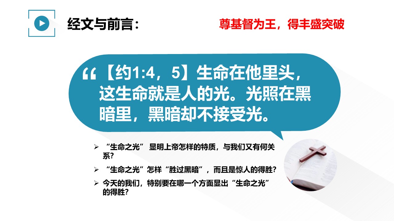 标签: 价值观 信心 生命 福音 胜过黑暗 钱财