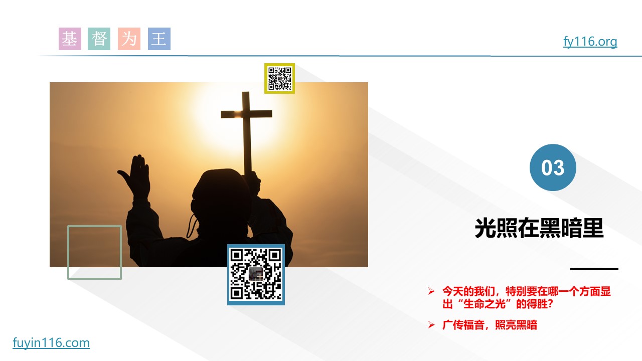 今天的我们,特别要在哪一个方面显出“生命之光”的得胜?