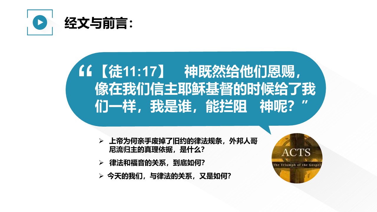 福音进入外邦人中间,其中一个重要的障碍,就是如何对待旧约律法。