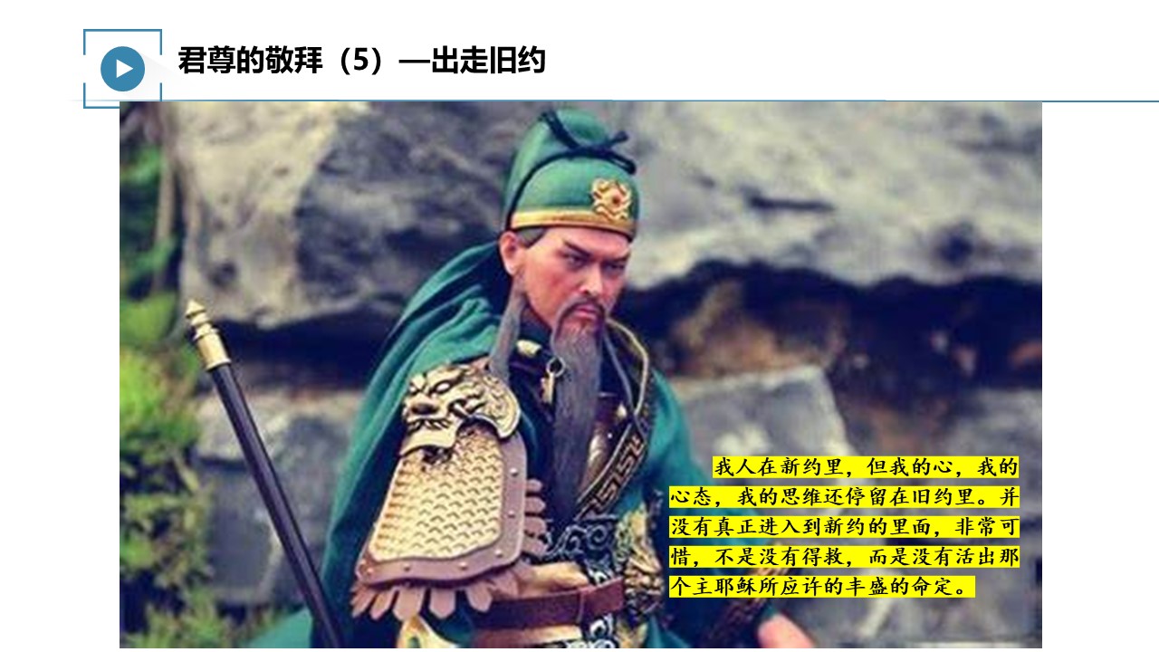 今天的我们,时间上是在新约时代,但你的心是在新约里,还是在旧约里呢?