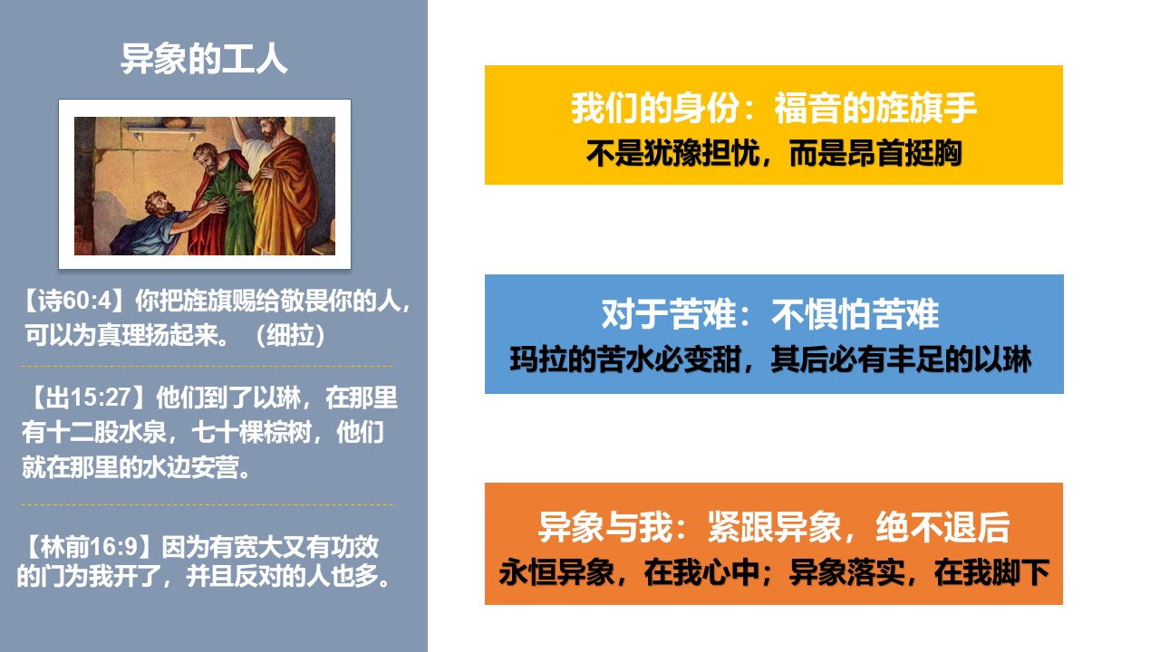 让我们更认识福音的大能,更注重与主同行、与神相交的生命建造,更勇敢为主作见证。