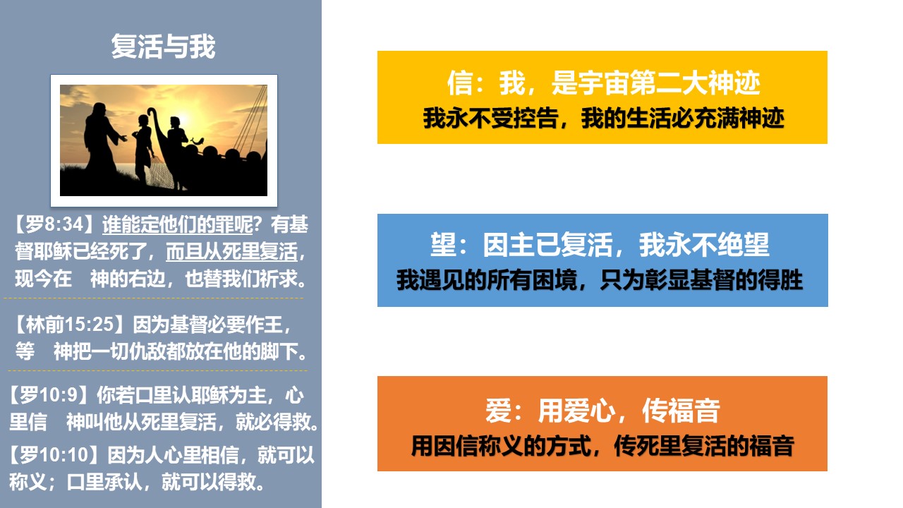 让我们更认识福音的大能,更注重与主同行、与神相交的生命建造,更勇敢为主作见证。