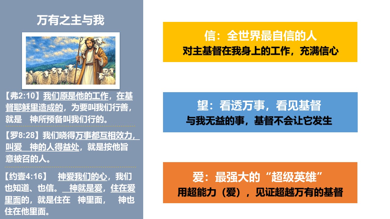让我们更认识福音的大能,更注重与主同行、与神相交的生命建造,更勇敢为主作见证。