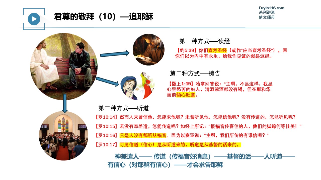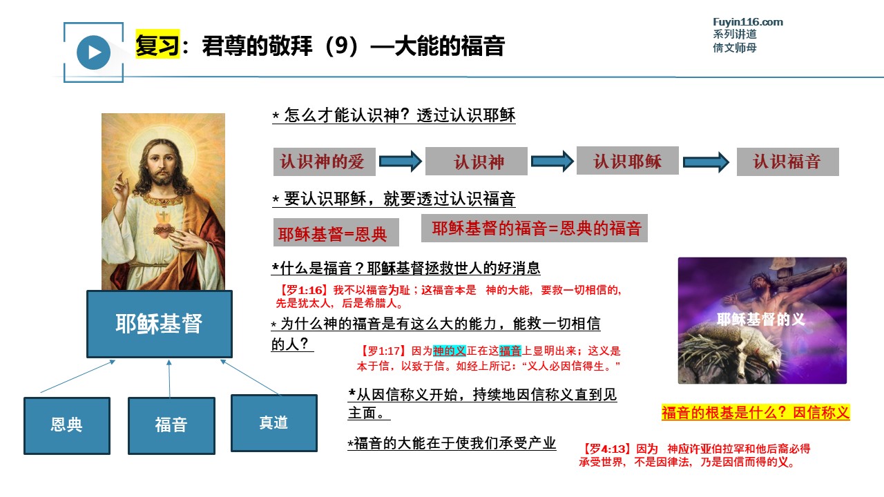 视频整理完成,我们就会把讲道视频共享出来,在此之前,可以观看上一讲《君尊的敬拜(09)大能的福音》的讲道视频: