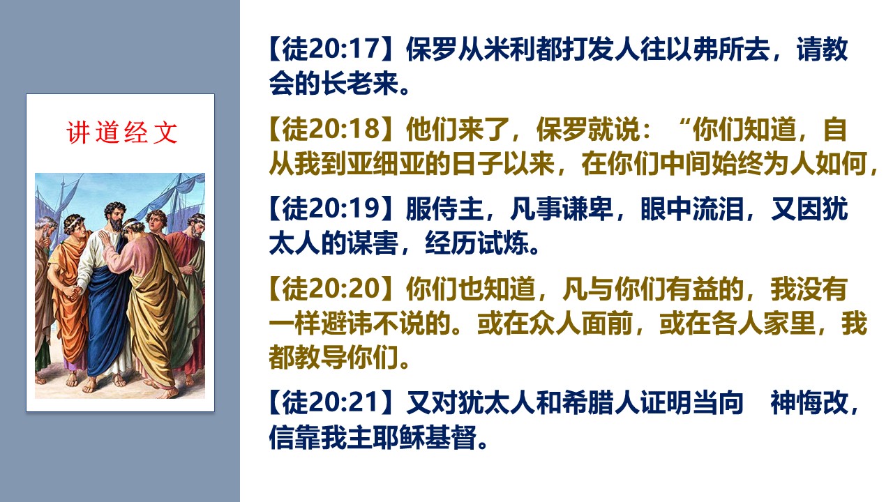 保罗向以弗所长老们的临别赠言,真是感人至深。