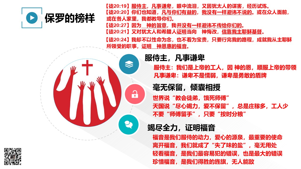 保罗先从自己这三年的服侍说起,他讲起自己的服侍榜样,给我们哪些重要提醒?