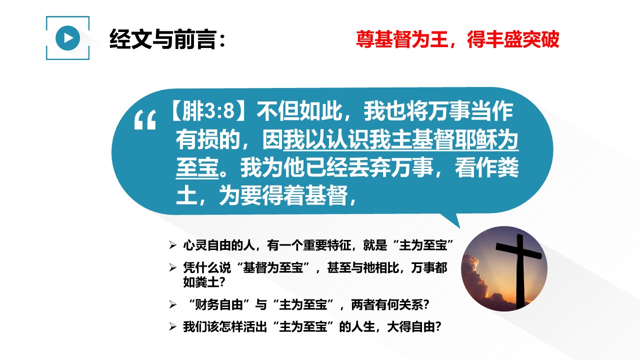 我们该怎样活出“主为至宝、财务自由”的人生,我们最需要做哪三件事?