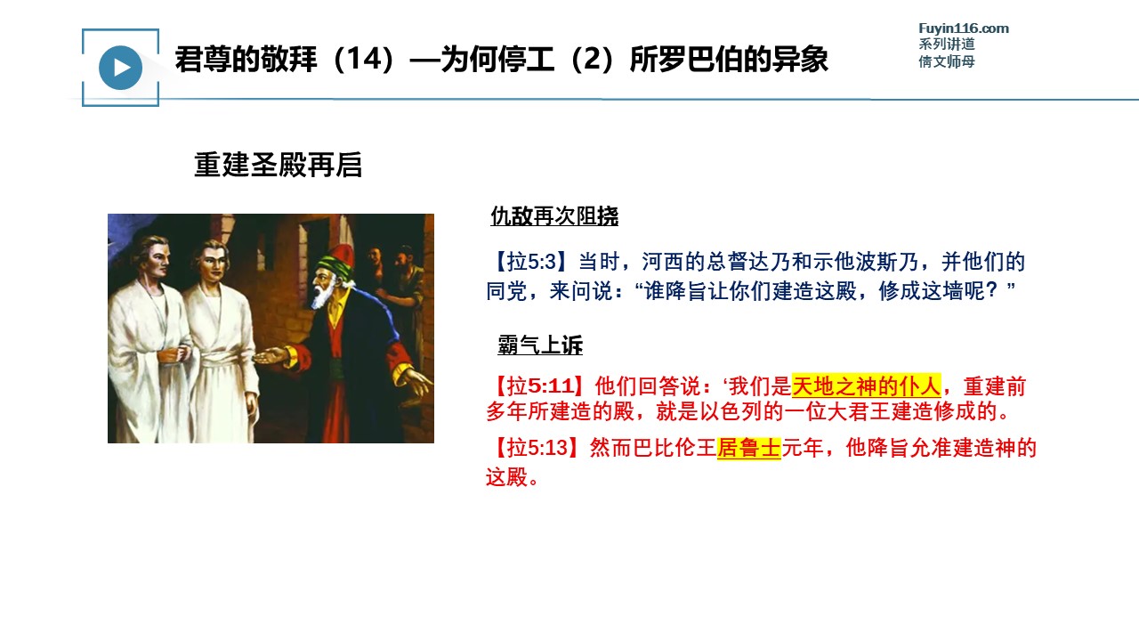 以色列人在建造第二圣殿(所罗巴伯圣殿)期间,有一段时间被迫停工了。