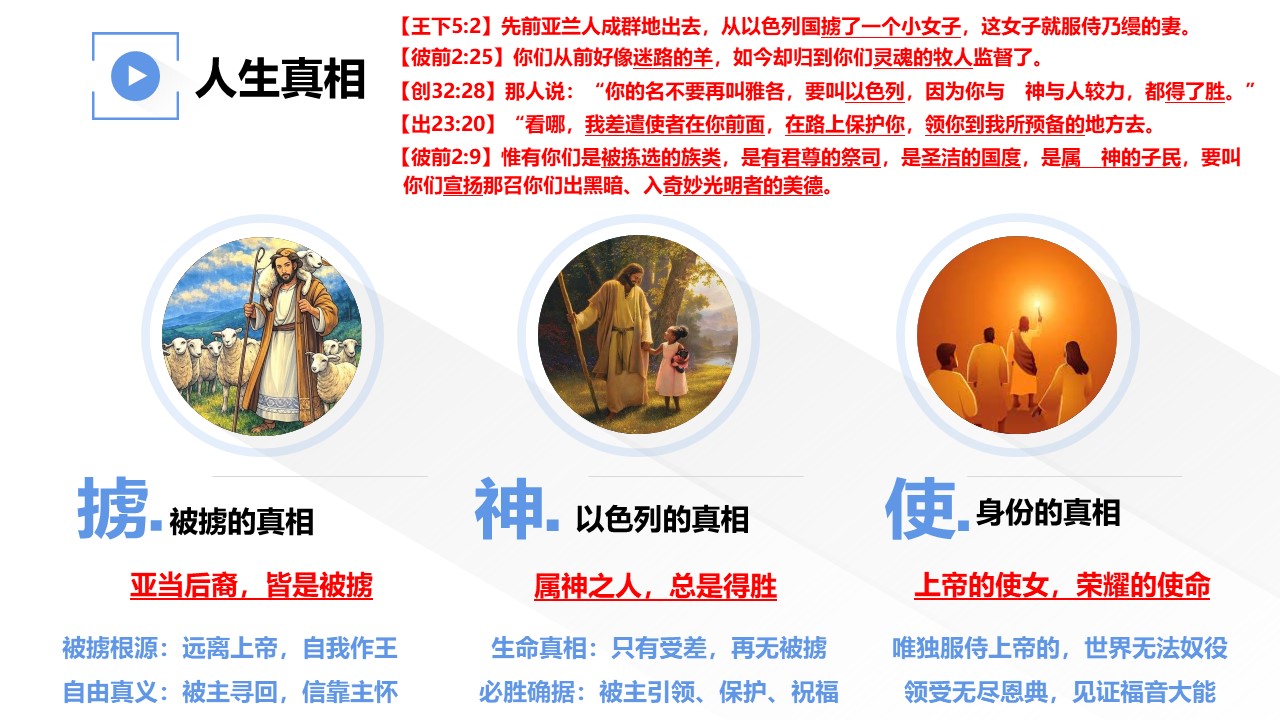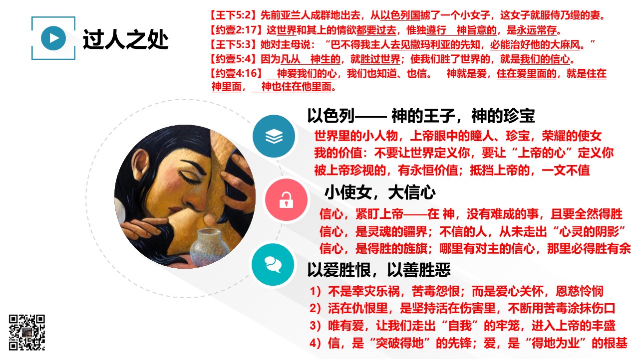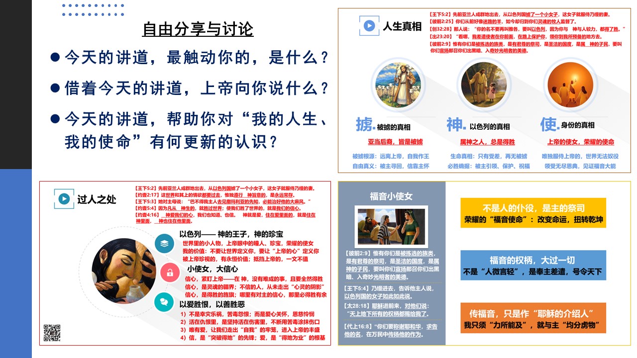 主耶稣在讲解福音时,曾特别提到“乃缦的故事”;乃缦身边的小使女,我们把她称为“福音小使女”。