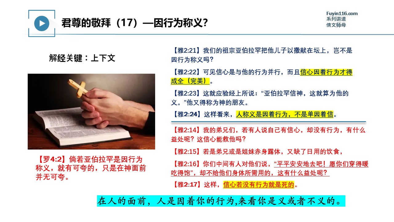 《雅各书》里面讲到的“因行为称义”到底是什么意思?