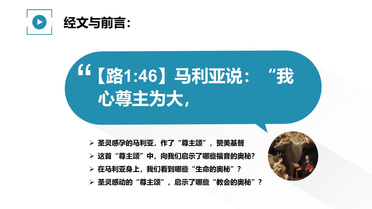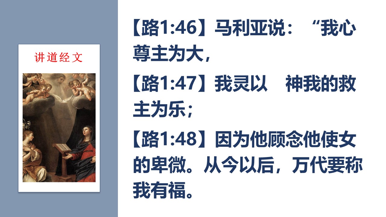 圣灵感孕的马利亚,作了“尊主颂”,赞美基督