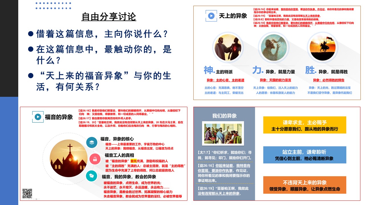 让我们更认识福音的大能,更注重与主同行、与神相交的生命建造,更勇敢为主作见证。