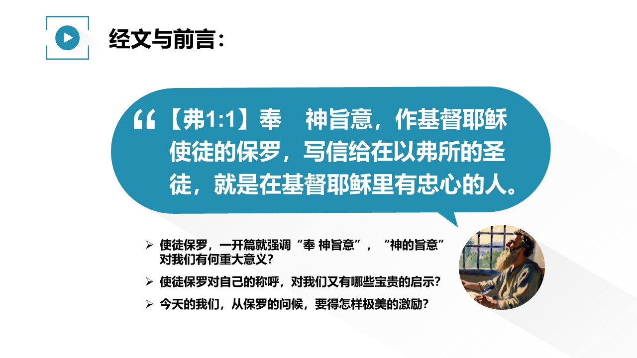 使徒保罗在《以弗所书》开篇就强调“奉 神旨意”,“神的旨意”对我们有何重大意义?
