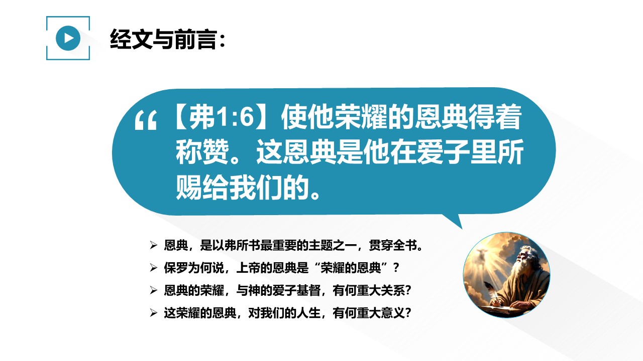 恩典,是以弗所书最重要的主题之一,贯穿全书。