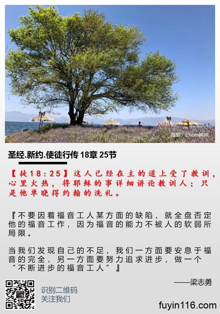 【徒18:25】这人已经在主的道上受了教训,心里火热,将耶稣的事详细讲论教训人;只是他单晓得约翰的洗礼。 《不断进步的福音工人》 作者:梁志勇牧师 朗诵:倩文师母 不断进步的福音工人 (梁志勇) 【徒18:25】这人已经在主的道上受了教训,心里火热,将耶稣的事详细讲论教训人;只是他单晓得约翰的洗礼。 我们在亚波罗身上看见圣灵大能的作为,他为道热切,而且他的表现极其出色,他在众人面前极有能力……证明耶稣是基督。 (徒18:28) 但这位大有能力的福音工人,也有严重的不足,就是他“单晓得约翰的洗礼”。 这…