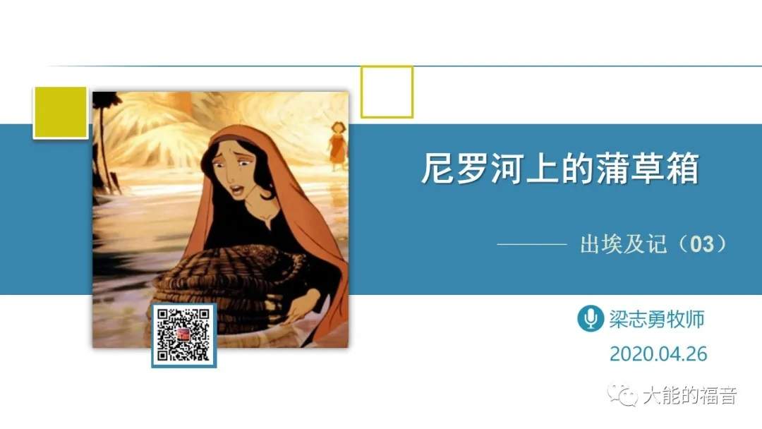 【出2:3】后来不能再藏,就取了一个蒲草箱,抹上石漆和石油,将孩子放在里头,把箱子搁在河边的芦荻中。 相关文章: 《听!尼罗河的这只蒲草箱,要向你说话》 《怎能从负累,变成大惊喜?》 主耶稣基督,感谢赞美你 感谢你赐给我们《圣经》真理,你的真理能使人得自由,你的真理也能使我们成圣。 求主祝福我们每一个听众,让我们都从今天的分享中大得益处。 就更珍惜我们的信仰,就更有信心为主而活。 主啊,也求你祝福我们的网络服事,让我们的工作能激励更多基督徒为主而活,见证基督恩惠的福音。 如此感恩、祷告和祈求,是奉耶稣的圣名,阿们!