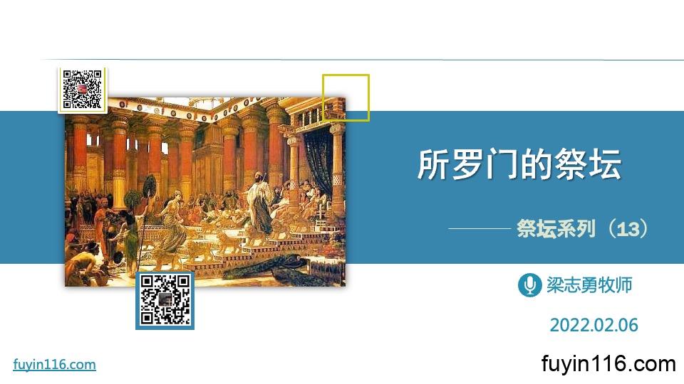 所罗门是著名的智慧王、平安王。 他的人生,与“祭坛”有什么关系? 从所罗门身上,我们可以学习到哪些重要的真理? 从所罗门身上,我们又能发现哪些“重要的警示”? 点击音频媒体前面的小三角“►”就可以播放讲道录音了: 主耶稣基督,感谢赞美你 感谢你赐给我们《圣经》真理,让我们认识“祭坛”与我们信仰的关系。 求主祝福我们这篇讲道,因为若没有你的祝福,我们所作的一切都毫无意义。 求你赐福我们所讲的,借着《所罗门的祭坛》的信息分享,让你的百姓得大造就。 求主让每一个听众,从“所罗门的祭坛”中得重要…