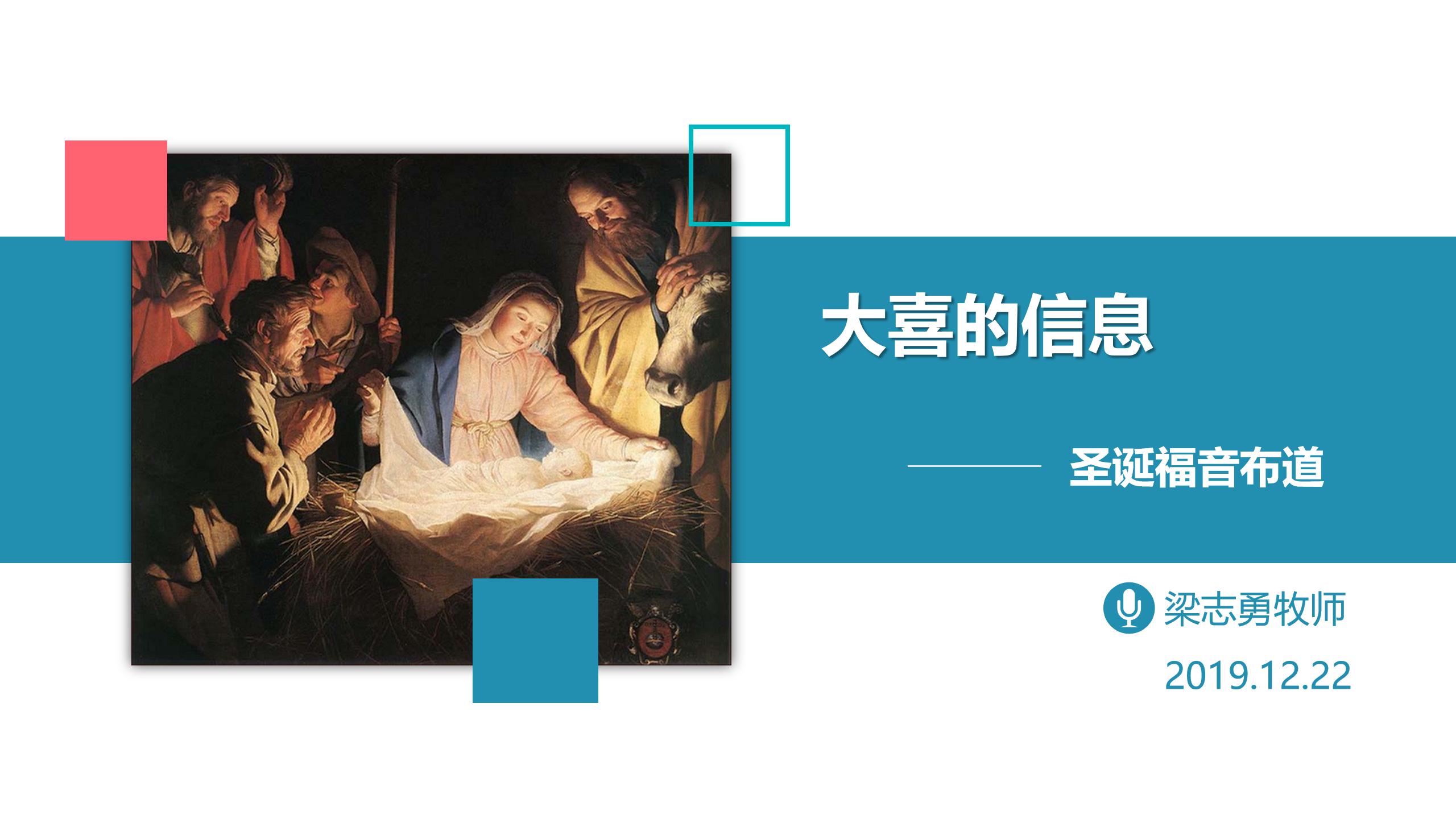 (上图来自网络) 你知道当天使报告耶稣降生的好消息时,是怎么说的吗? 这事为何被称为“大喜的信息”? 这“大喜的信息”,和我们有什么关系呢? 请听我们的讲道剪辑:基督的降生,为何被称为“大喜的信息”?-梁志勇《2019圣诞-大喜的信息》 【路2:10】那天使对他们说:“不要惧怕,我报给你们大喜的信息,是关乎万民的。 圣诞节的真正意义,就是记念主基督的降生。 但你知道,《圣经》是怎样论到主耶稣的降生吗? 在路加福音第2章,天使向牧羊人介绍主耶稣的降生的时候,他说“我报给你们‘大喜的信息’”。 耶稣基督降世,为什么被称…