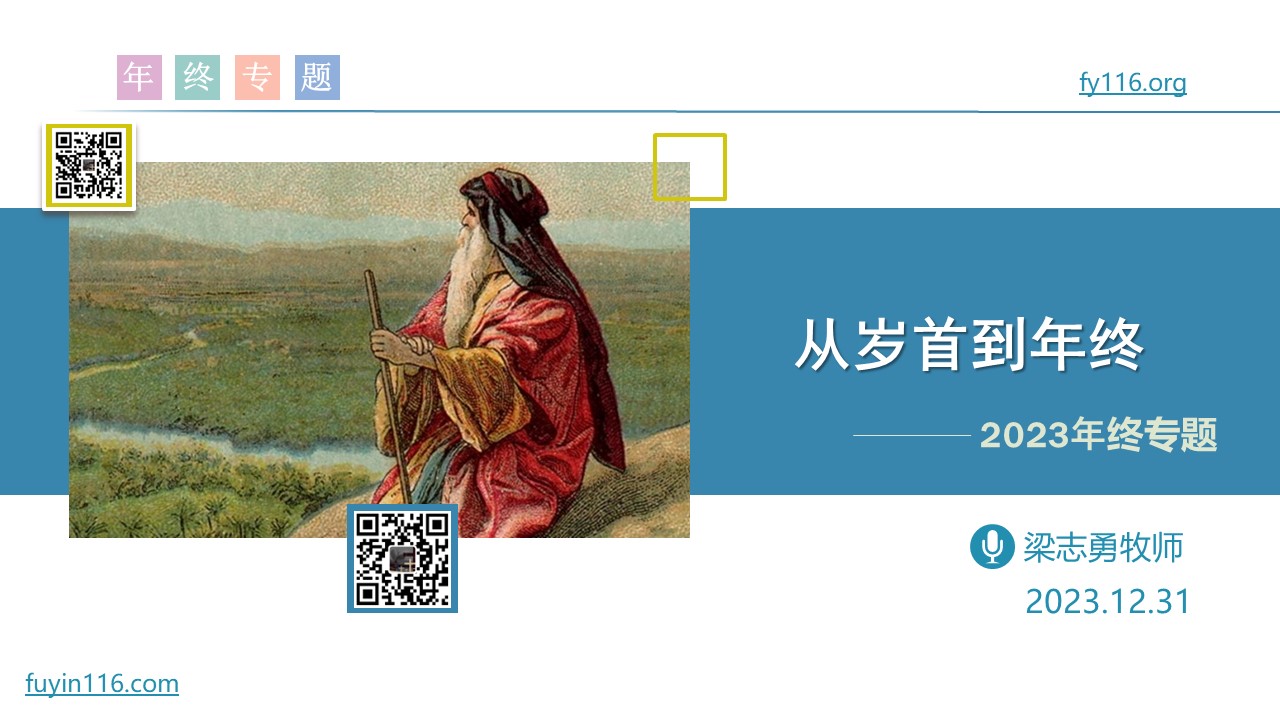 2023年的第一天和最后一天,正巧都是主日。 我们该怎样作“年终总结”和“新年计划”,总结和展望的依据是什么? 我们的2023年的回顾总结,是哪四个字? 对2024年的预测,我们拥有哪些最重要的确据和方向? 愿上帝的祝福借着祂的真道,更多地临到每一个认真聆听的灵魂。 欢迎您收听: 《从岁首到年终》 https://fuyinshu.top/7x9m 您也可以点击下面的链接,重温之前的信息: 《圣殿系列》 点击音频媒体前面的小三角“►”就可以播放: 我们的阿爸天…
