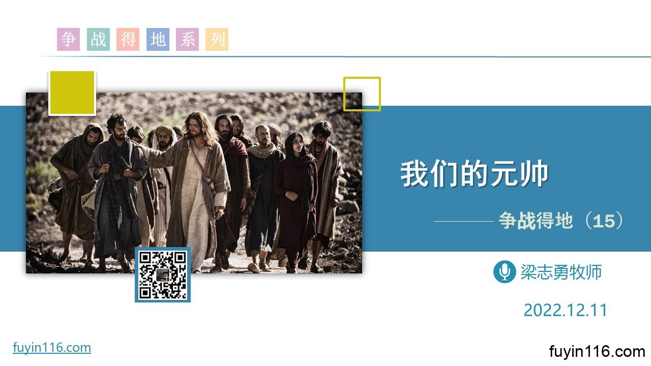 在12月11日,我们继续《争战得地》系列的分享,第15讲: 《我们的元帅》 当我们知道自己拥有何等强大的“争战的力量”之后,我们还必须问几个重要的问题: 是谁,率领我们争战,谁是我们“争战的元帅”? 祂作“我们的元帅”,意味着什么呢? 对于这位元帅,我们最应该做的事情是什么呢? 欢迎您跟着我们的文章的提示,参加我们的视频直播或收听我们的录音,愿上帝的祝福借着祂的真道,更多地临到每一个认真聆听的灵魂。 您也可以点击下面的链接,重温之前的信息: 《争战得地》系列 点击音频媒体前面的小三角“►”就可以播放 …