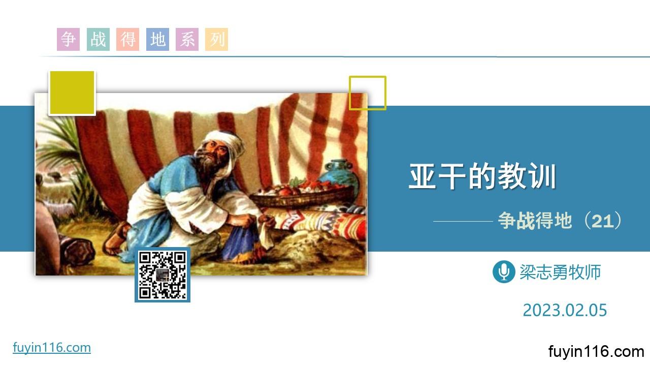 在2月12日,我们继续《争战得地》系列的分享,第21讲: 《亚干的教训》 让我们一起探讨: 《圣经》为何把亚干的故事记载下来,上帝的深意是什么? 我们到底该如何看待亚干的犯罪? 在亚干身上,我们得到哪些重要的教训? 愿上帝的祝福借着祂的真道,更多地临到每一个认真聆听的灵魂。 欢迎您跟着我们的文章的提示,收听我们的录音: 《亚干的教训》 您也可以点击下面的链接,重温之前的信息: 《争战得地》系列 《正月初一日》 《新天新地、新圣城》 《圣诞专题:平安何处来?》 点击音频媒体前面的小三角“►”就可以播放 …